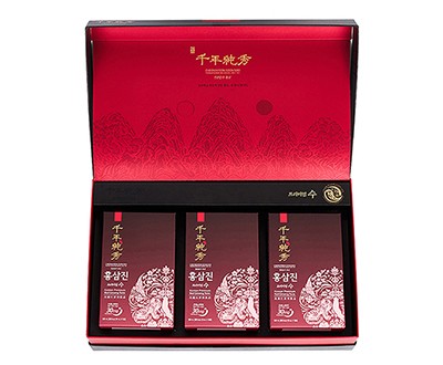| 원재료명 및 함량 | 흑삼분말액 진[고형분 8.9%, 정제수, 흑삼분말, 국산]79.4%, 홍삼농축액(고형분 60%이상, 홍삼성분 70mg/g 이상, 진세노사이드 Rg1+Rb1+Rg3의 합 23mg/g이상, 국산)16%, 석류농축액(65brix), 녹용추출액, 수용성아쿠아민(칼슘12%), 아사이 혼합 베리농축액(65brix), 유기농 아로니아농축액(65brix), 유기농 콩코드포도농축액(68brix), 17종 유기농 과일야채 혼합분말 |